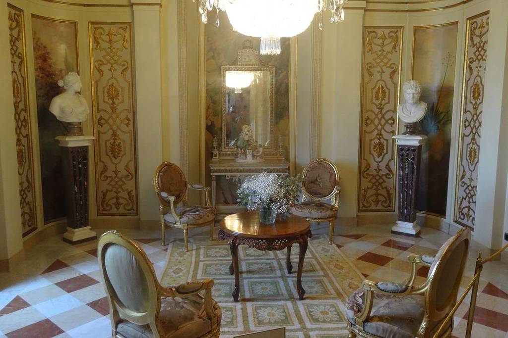 La mansió té tapissos basats en dissenys de Francisco de Goya i una cúpula impressionant pintada per Salvador Dalí, on l’artista va capturar al·legories de la cultura de Barcelona.