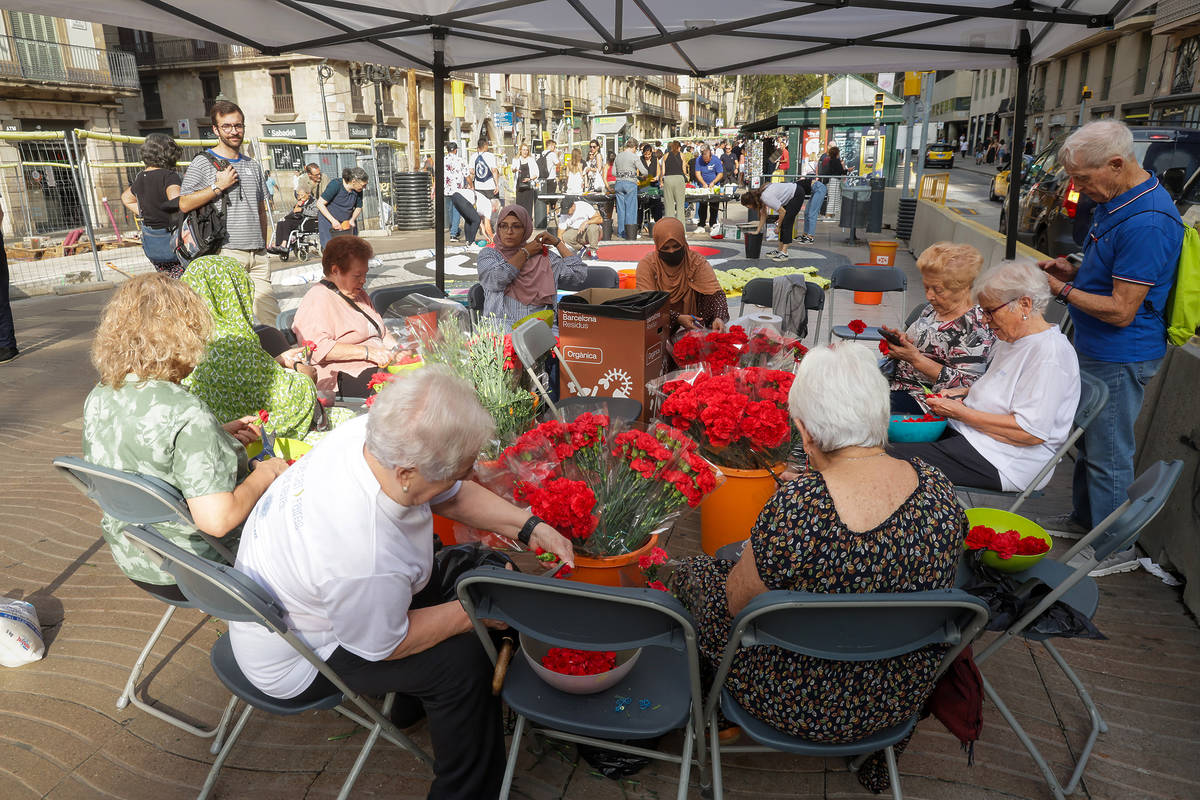 Uno de los momentos más esperados de la Festa del Roser son las decoraciones florales que engalanan distintos puntos de la Rambla. Comercios, instituciones y vecinos se encargan de vestir de color lugares tan reconocidos como Las Golondrinas, el Garaje Atarazanas, el Arts Santa Mònica, el Museo de Cera, el Teatro Poliorama o el Palau de la Virreina, que se llenarán de flores con la acción “Una flor, un desig”.